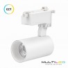 Foco de carril LED monofásico en acabado blanco diseñado para iluminación comercial de precisión. Integra tecnología CCT 3 en 1, permitiendo alternar entre 3000K, 4000K y 6000K mediante selector en el propio foco, sin necesidad de cambiar de luminaria. Entrega 1200 lúmenes con un consumo de 12W y una eficiencia de 100 lm/W, apoyado en chip LED Bridgelux y un ángulo de haz cerrado de 24° que lo hace idóneo para iluminación de acento sobre productos, escaparates y obras de arte. El cuerpo de aluminio garantiza una disipación térmica óptima, prolongando la vida útil hasta las 30.000 horas. Alimentación universal 85-265V AC, factor de potencia 0,95 y protección contra sobretensiones de 2 kV que aporta una capa adicional de seguridad frente a picos eléctricos. Compatible con carriles monofásicos estándar. |
